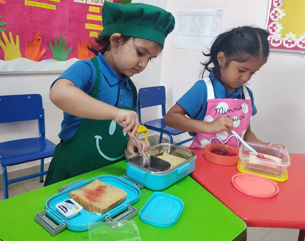 While the lower kindergarten children learnt about the roles and responsibilities of people on the campus engaged in different functions such as nurse, drivers, pool lifeguards, etc, by interviewing them, the upper kindergarten children learnt about the five senses through a fascinating and tasty cookie baking experience at the Treamis kitchen.